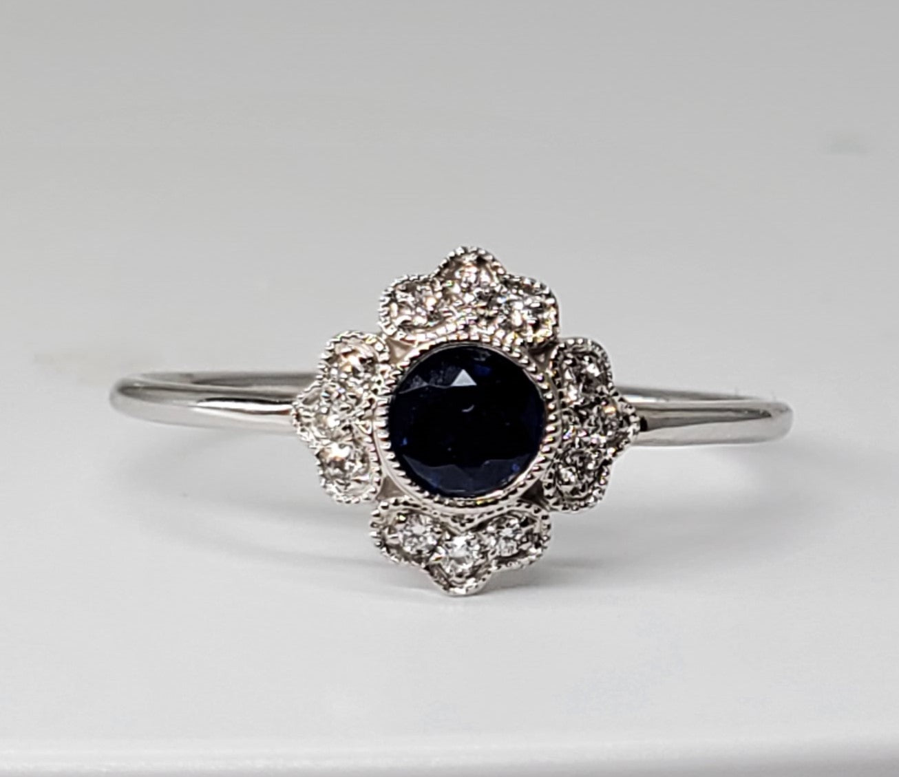 14K White Gold Sapphire & Diamond Vintage Style Ring DCR- 24691