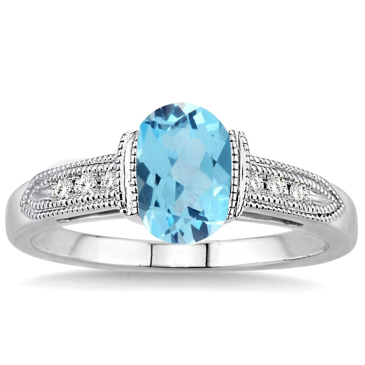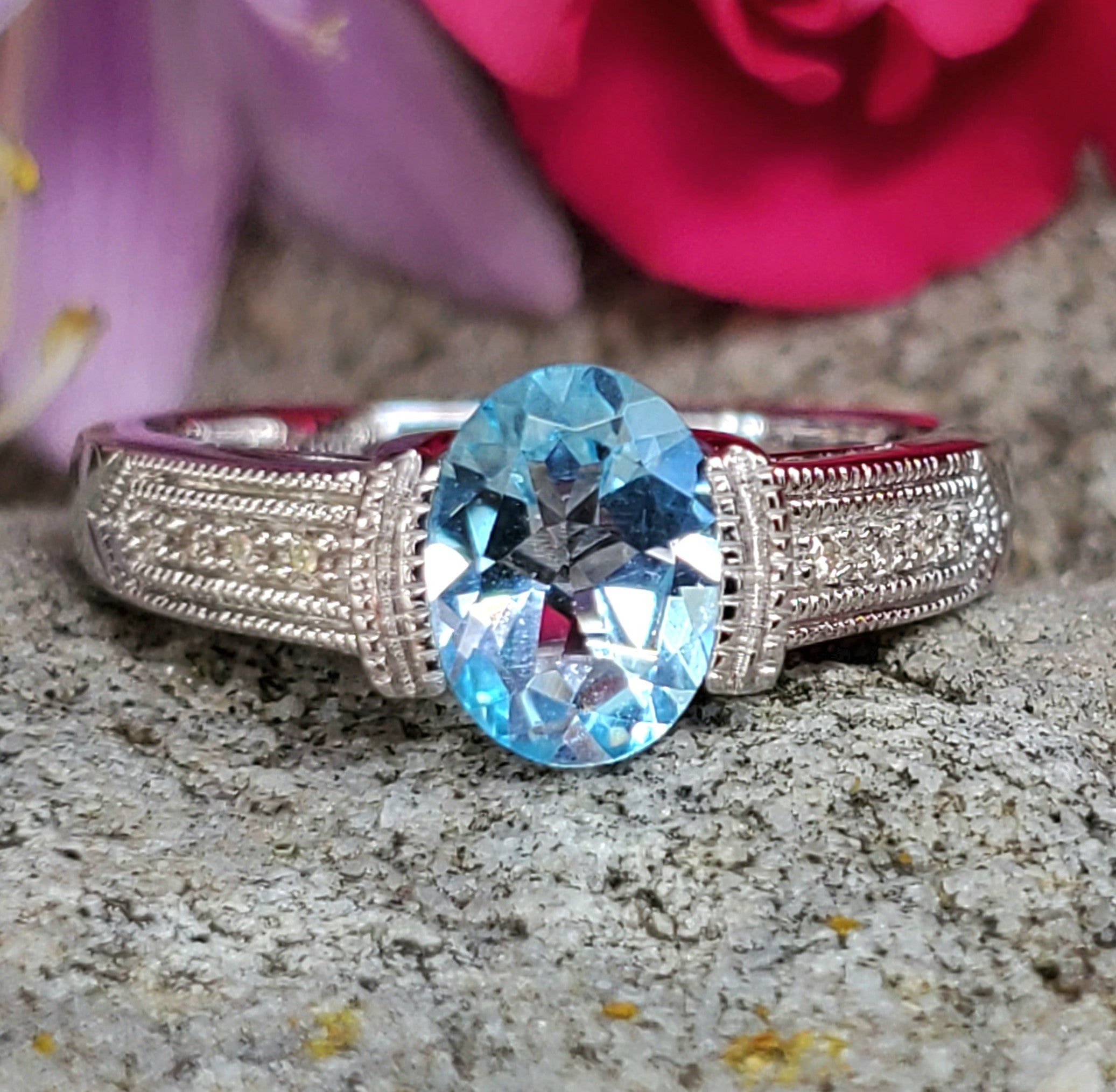 Sterling Silver Oval Blue Topaz & Diamond Ring SDM-11304