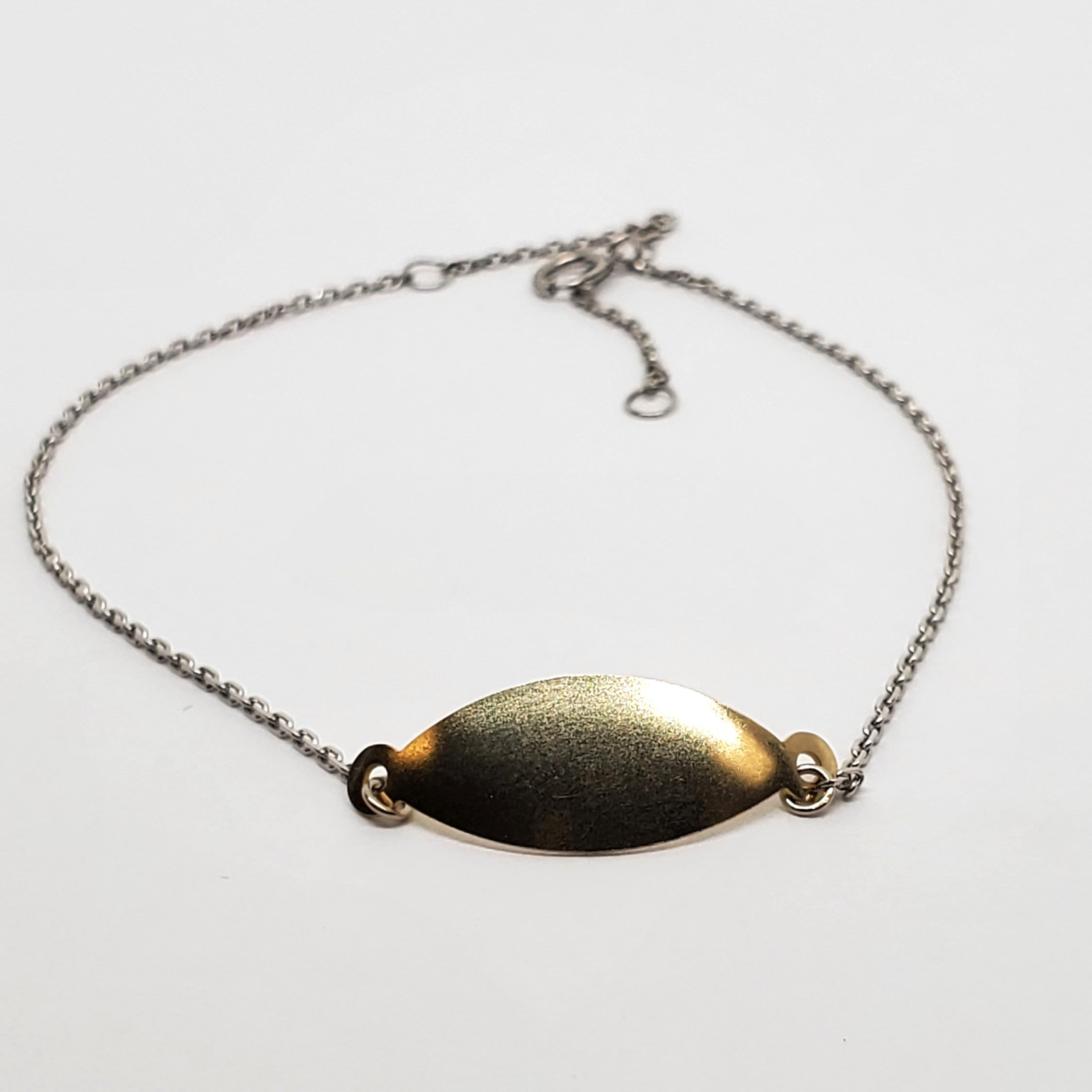 14KTT 9" Anklet with engraving plaque - could also be shortened for a bracelet