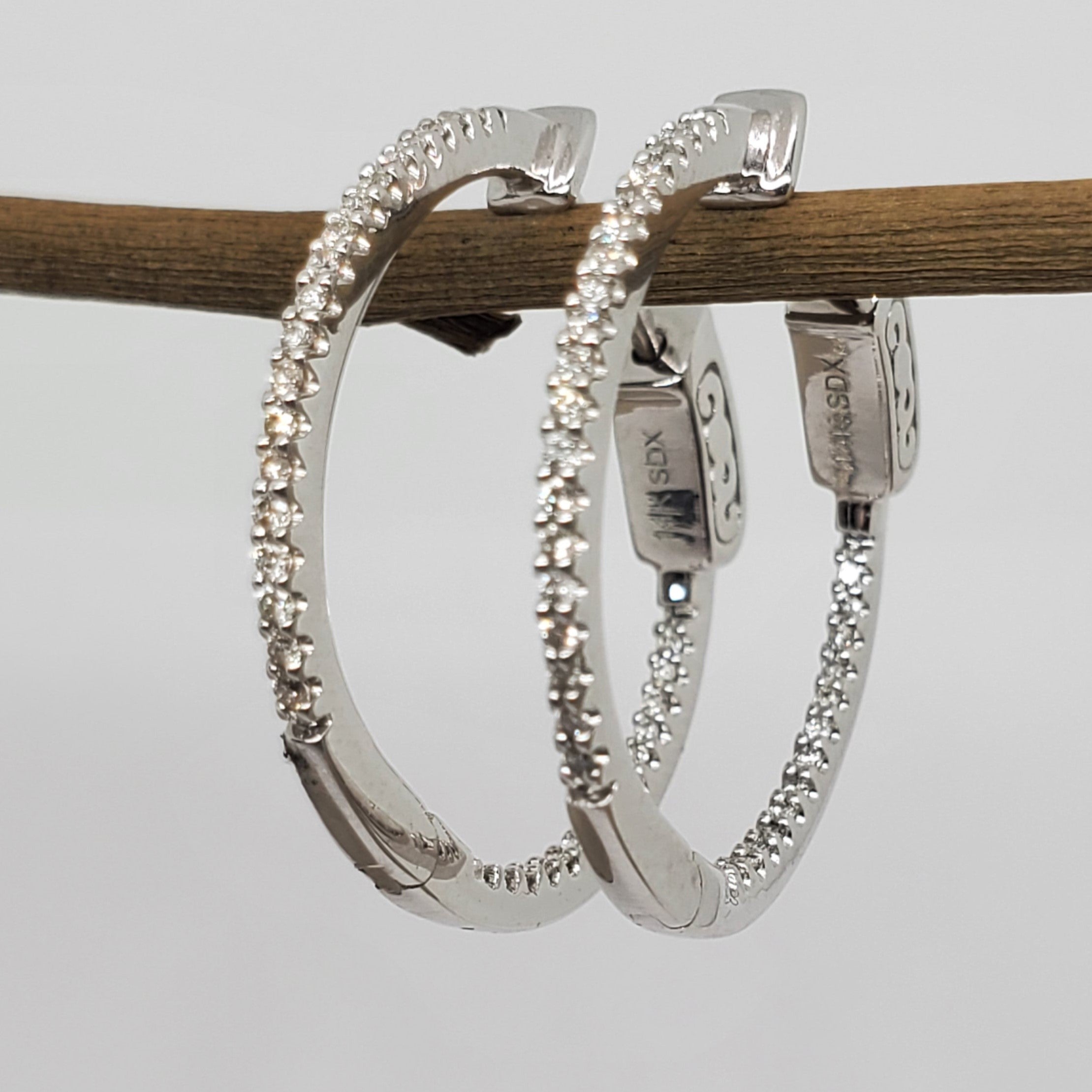 14K White Gold 1/4CTW Diamond In & Out Round Hoop Earrings with lock