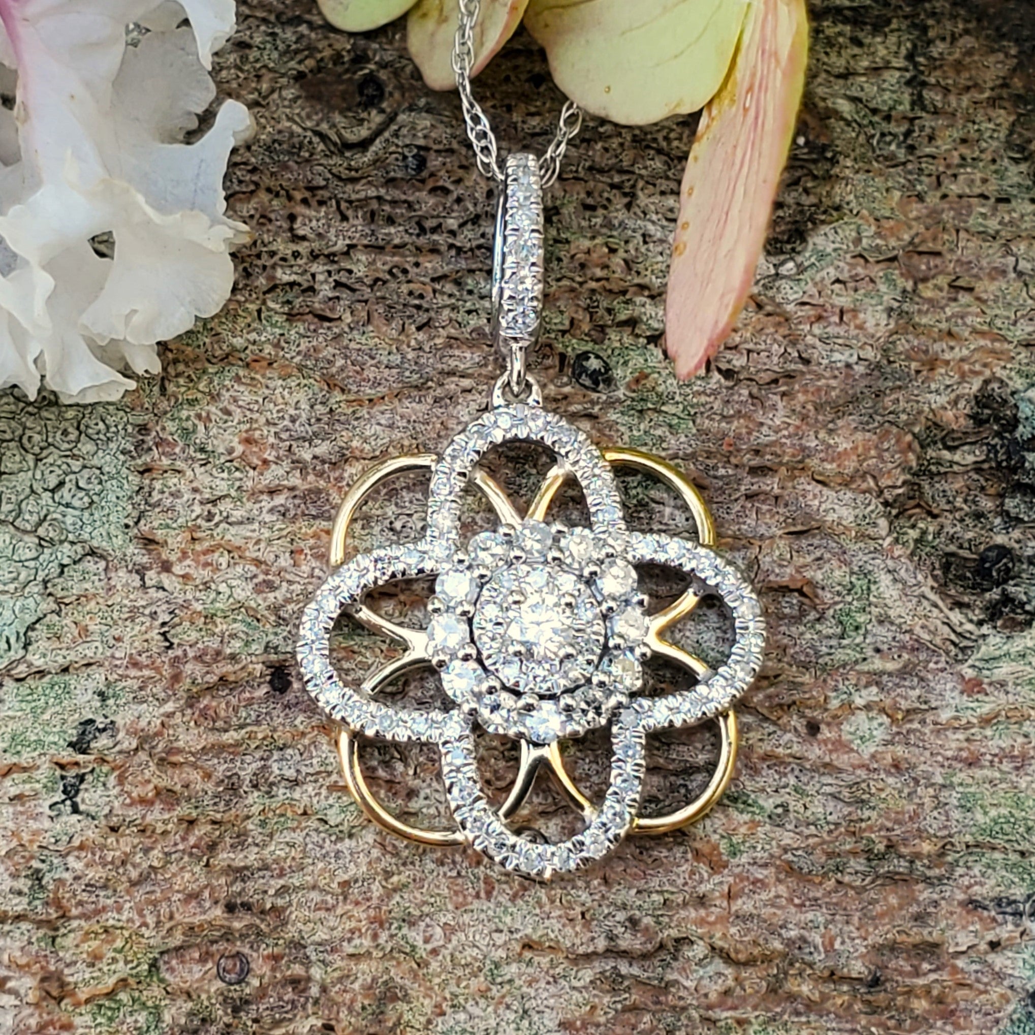 14k Yellow & White Gold Diamond Cluster Pendant set with .25ctw of diamonds.