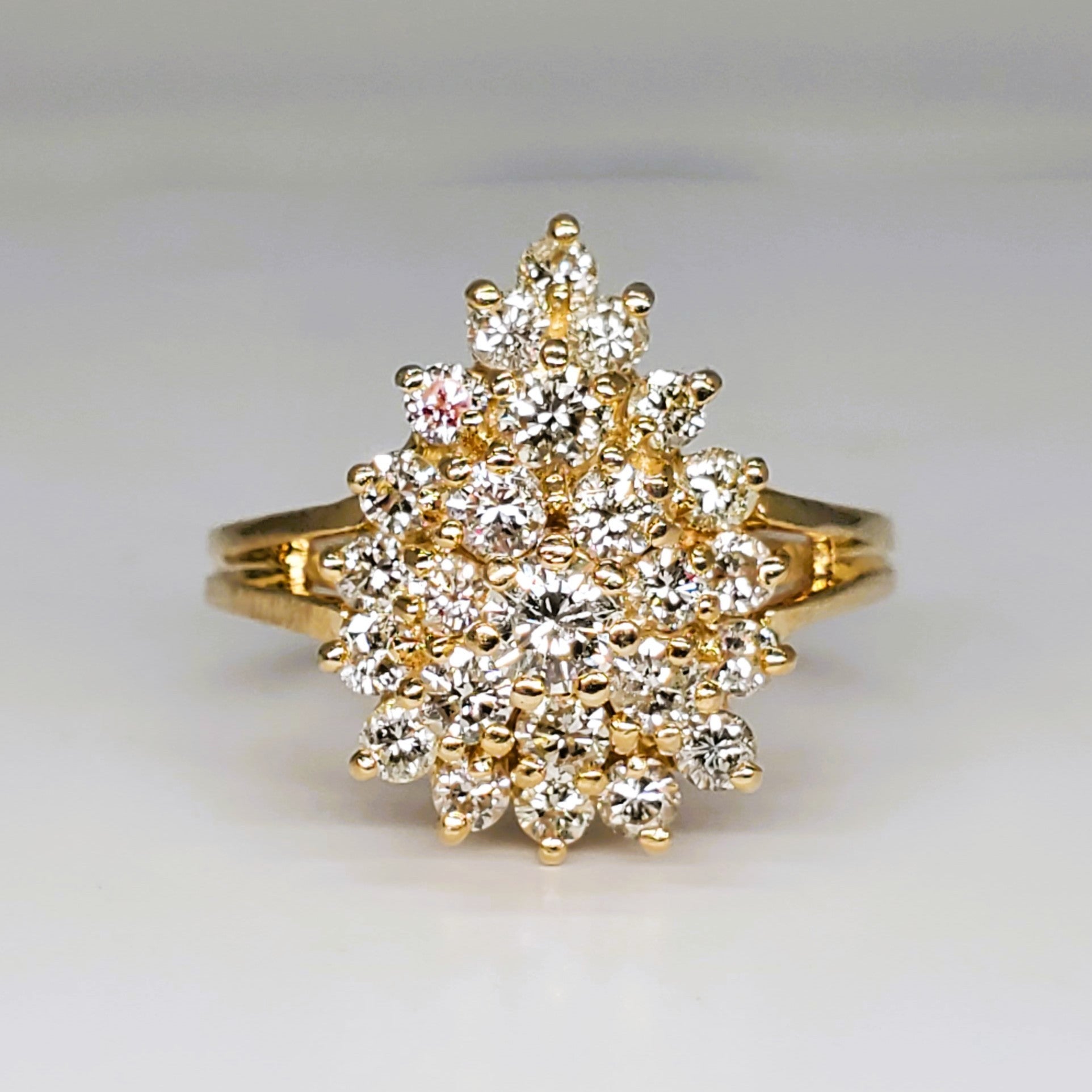 14K Gold 1 CTW Pear Shape Diamond Cluster Ring