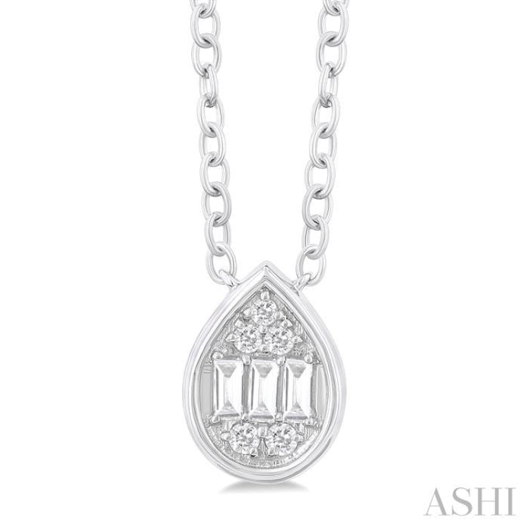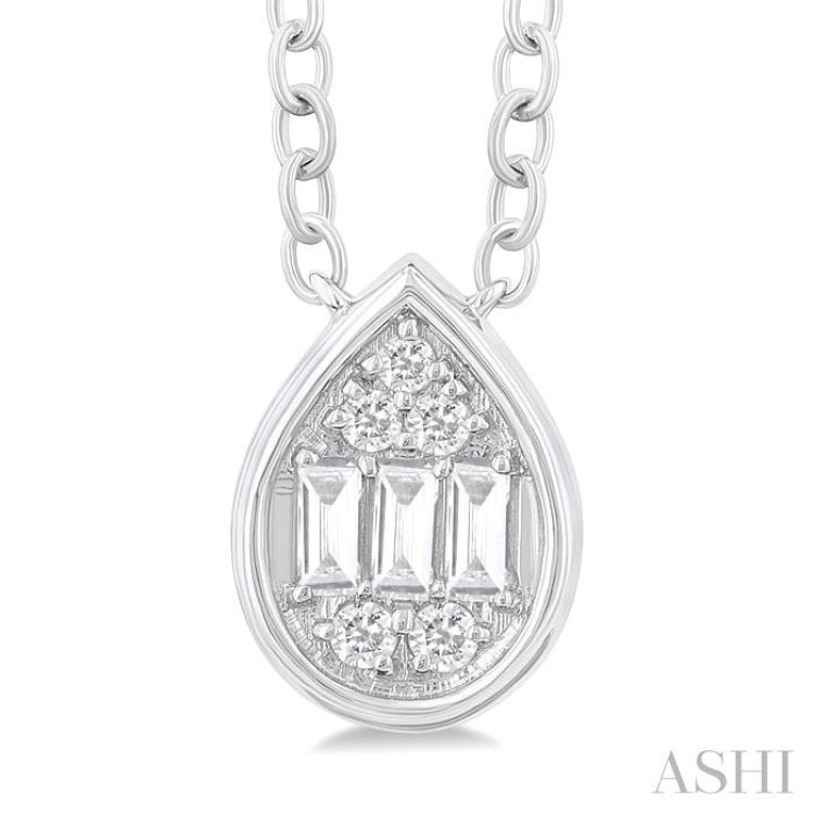 1/6 Ctw Petite Bezel Set Pear Shape Fusion Baguette and Round Cut Diamond Fashion Pendant With Chain in 10K White Gold