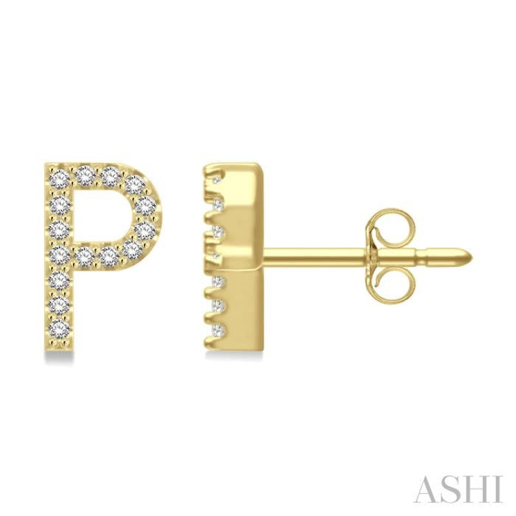 1/10 Ctw Initial 'P' Round Cut Diamond Earrings in 10K Yellow Gold