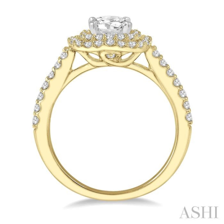 This Semi-Mount diamond ring is your ideal choice if you wish to select the diamond size that you want installed on it. The ring features a round center mount that can hold a round cut diamond ranging from 0.85 carat to 1.20 carat, as per your choice. Rest of the diamond embellishments come preset. Two square shaped rows bordering the round center mount is encrusted with 62 prong set round cut diamonds. The shank is also decorated with round cut diamonds for added elegance. The ring is styled in 14 karat yellow and white gold. The total diamond weight is 5/8 Ctw.